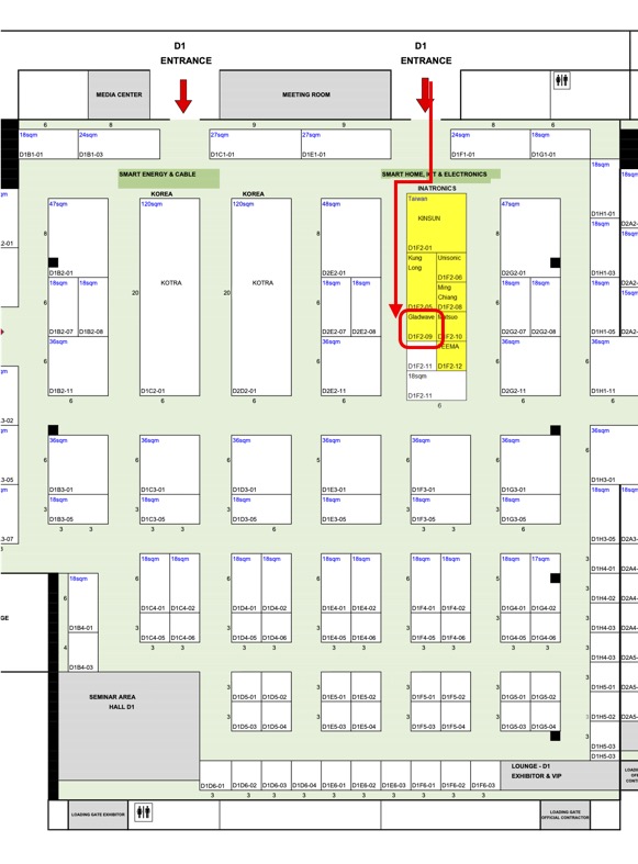 • 到達路線: 請由 D1 Entrance 入口進入,直行約 10 公尺,欣橋科技位於右手邊的 Taiwan Pavilion(台灣館)區域。